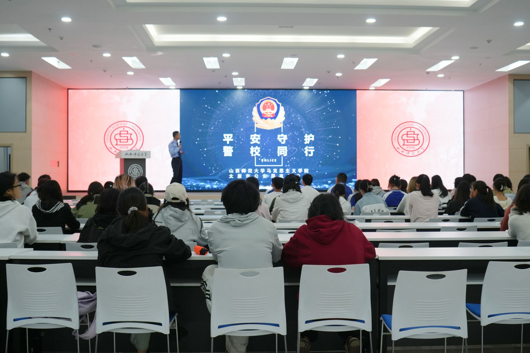 为切实增强师生对电信网络诈骗的防范意识,5月23日,太阳成集团tyc122cc与初心社区在北区2号教学楼毓秀学堂共同举办了“平安守护,警校同行”防范电信诈骗专题讲座。本次讲座特邀太原市公安局直属分局的王警官担任主讲,2024级员工代表参加。