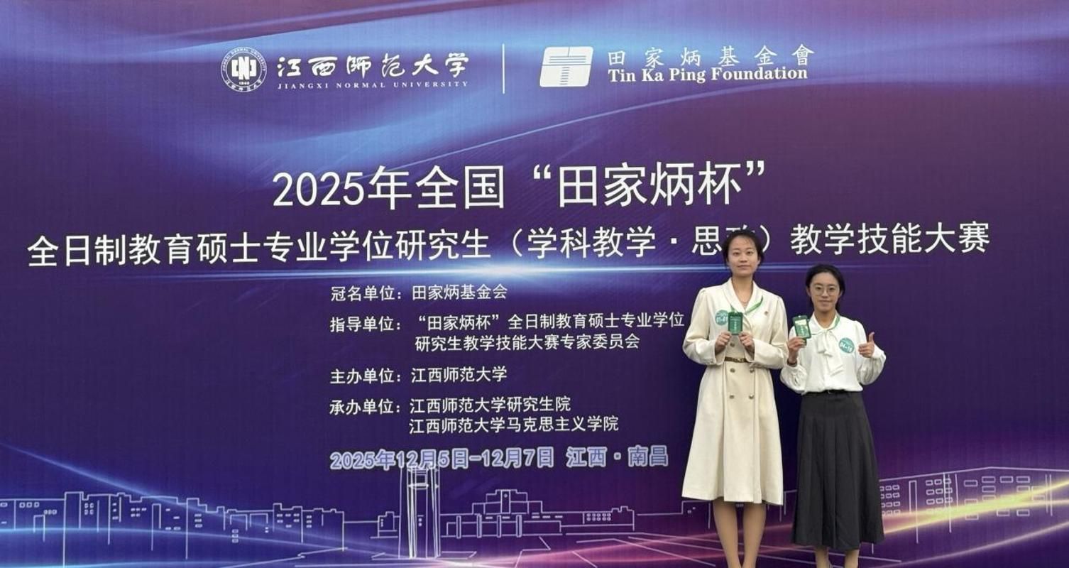 12月5日至7日,2025年全国“田家炳杯”全日制教育硕士专业学位研究生(学科教学·思政)教学技能大赛在江西师范大学举行。太阳成集团tyc122cc吕松宸、李钰苇2位同学进入决赛,最终,吕松宸同学获全国三等奖,李钰苇同学获优秀教学设计奖。