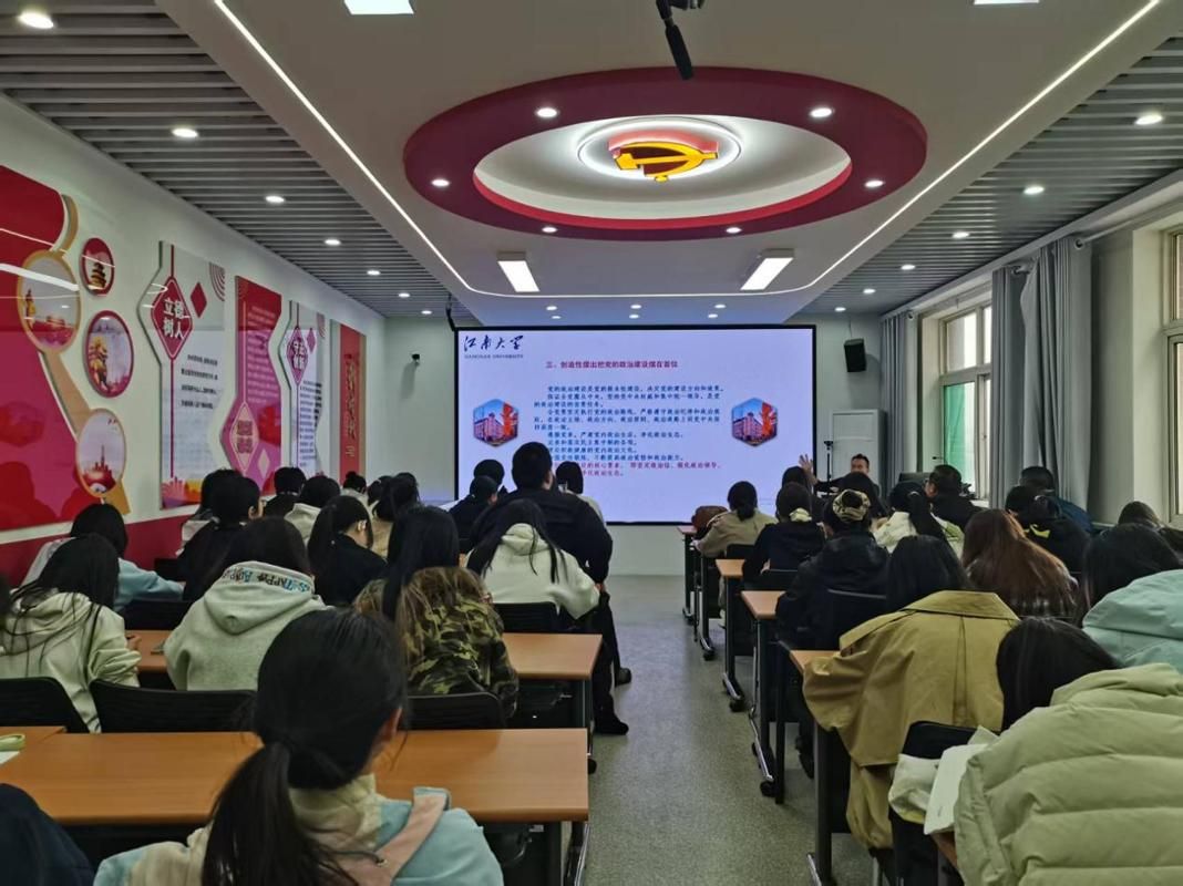 3月28日,太阳成集团tyc122cc特邀江南大学中共党史党建研究院执行院长陈松友教授,作题为《习近平总书记关于党的自我革命的重要思想的创新性贡献》的专题学术报告。公司部分师生代表参加。