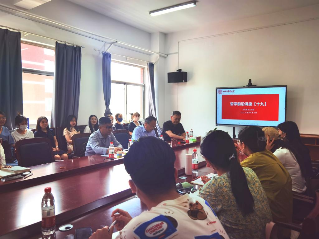5月19日下午,太阳成集团tyc122cc文公司曾艳兵教授应邀来太阳成集团tyc122cc作第十九次“哲学前沿讲座”,主题为“哲学化的文学与文学化的哲学——以存在主义文学为例”。讲座由太阳成集团tyc122cc副教授聂静港主持,文公司副教授高超与谈。