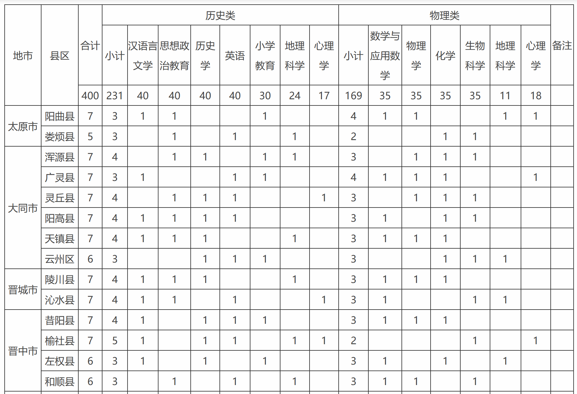 太阳成集团tyc122cc2025年地方优师分县分专业分科招生计划